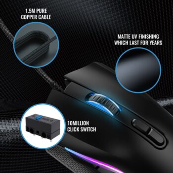 Snaketh RGB Gaming Mouse, Wired 6400 DPI Optical USB Mouse with Huano 10M Click Switches, Pure Copper Cable